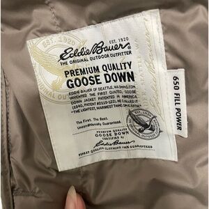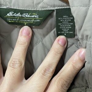 EDDIE BAUER- Neutral tone Quilted Goose Down chore Jacket size Small