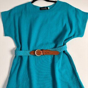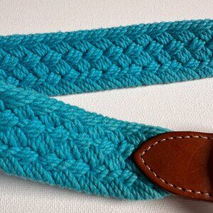 Love this New with Tags, never worn belt for it's Bright, Happy Aqua cotton weave and leather accents.