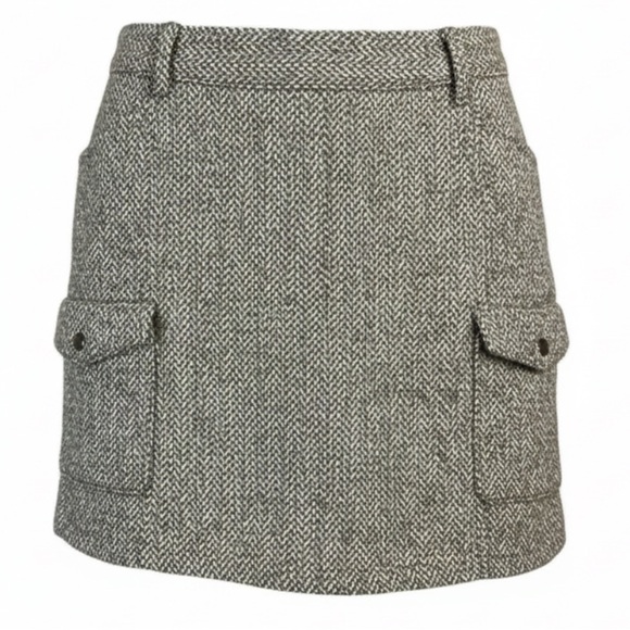 Women’s mixed grey and tan Eddie Bauer Wool Blend Tweed Cargo Utility Mini Skirt.