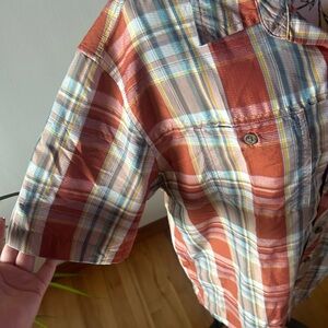 EDDIE BAUER men’s sz L short sleeve button down rustic plaid top