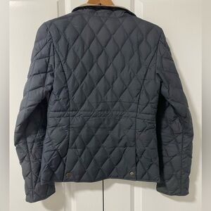 Eddie Bauer quilted goose down filled jacket in excellent condition. Perfect for your transitional season and winter wardrobe! 550 fill power Quilted design, inside drawstring to adjust waist, down insulation. Lightweight, flat snap front pockets, back snap slits, snap closure. Shell & lining - 100% polyester Insulation - minimum 75% goose down Machine wash or dry clean Size: xs