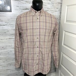 EDDIE Bauer Neutral Plaid Preppy Casual Button Down Shirt Brown Relaxed fit M/L