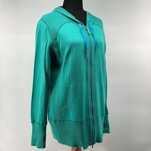 EDDIE Bauer light weight knit hoodie full zip camping hiking outdoors sz lg