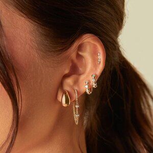 EF Collection Pillow Chain Diamond Mini Huggie Earring. Comes just as a single (but if you want a pair - you can still find these full price online). So gorgeous!! Done in 14K yellow gold, with pave diamonds on the ring, and two little diamonds dangling from looping gold chains, this piece is subtle, but not too subtle, and just the right amount of rebellious! The details: