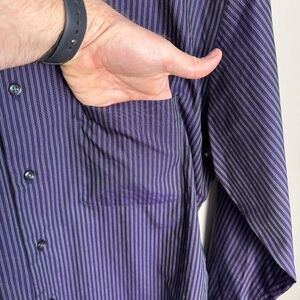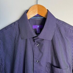 EGARA Men's Long Sleeve Striped Cotton Dress Shirt Button Up Purple 16 - 34/35
