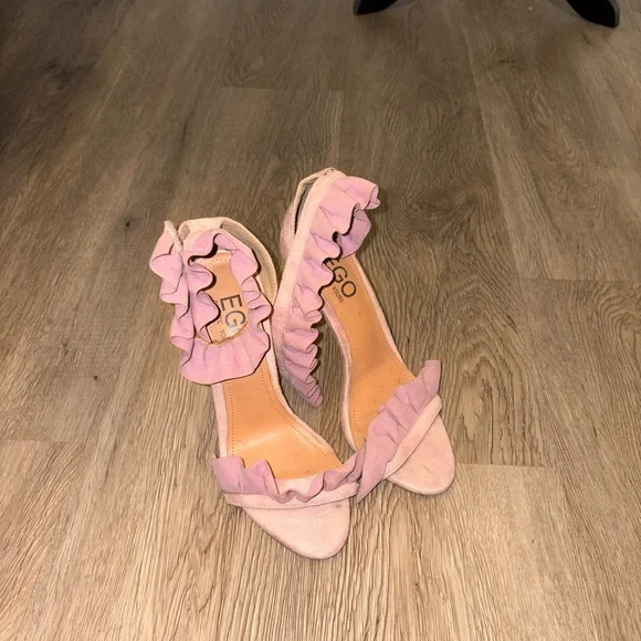 Elegant blush heels with playful ruffle detail. Perfect for any occasion.