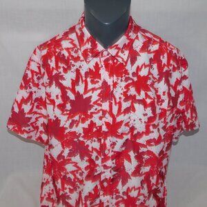 EH Canada Red White Maple Leaf Mens XL Short sleeve Button Front Shirt Canadian