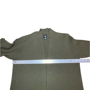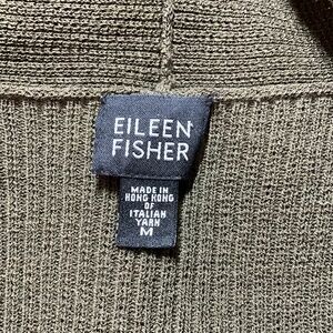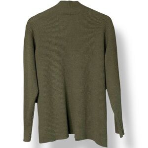 EILEEN FISHER 100% Wool Vintage Rib Knit Open Front Cardigan Army Green Sz M