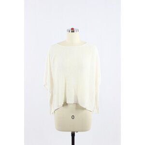 EILEEN FISHER Ivory White Hemp Bled Knit Poncho Box Blouse Top, Size S