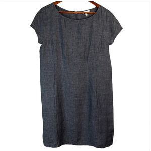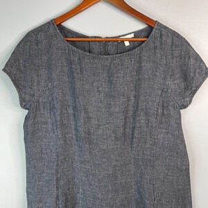 EILEEN FISHER Linen Chambray Dress Blue Grey Cap Sleeve Exposed Zipper S