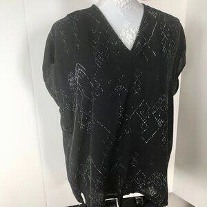 EILEEN FISHER BLACK SILK TENCEL MARRAKESH PRINTED TOP SIZE SMALL