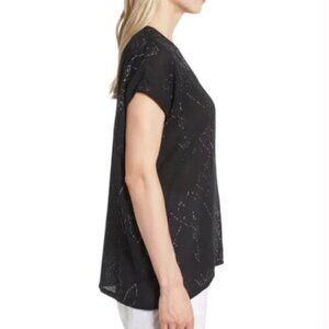 EILEEN FISHER MARRAKESH Black White Print V-Neck Silk/Tencel Cap Sleeve Top US S