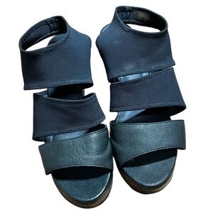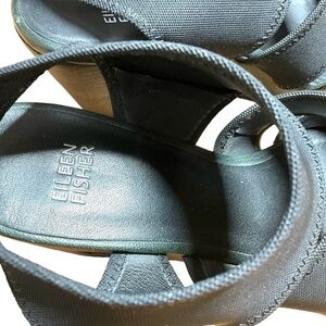 EILEEN FISHER Rally 2 Stretch Black Leather and Mesh Cut Out Wedge Sandal Sz 9.5