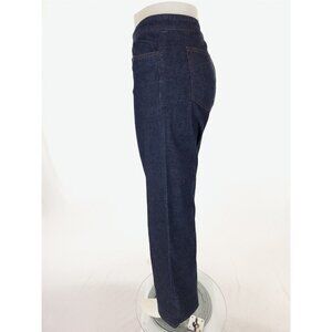 Mid Rise denim pants from Eileen Fisher. 5 pocket style. Straight wide leg. Well made, comfortable pants in a relaxed but flattering fit