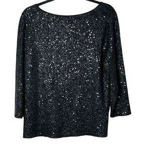 EILEEN FISHER Silk / Cotton Blend All Over Black Sequin Top 3/4 Sleeves US Sz M