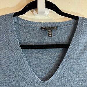 EILEEN FISHER Sz S Sweater 100% Merino Wool V-Neck Tunic Style Long Line Hi Low. Soft and breezy. Slightly oversized.