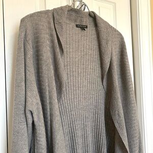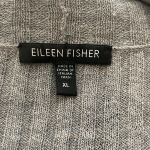 EILEEN FISHER Washable Wool Diagonal Flutter Open Cardigan Smoke Grey Size XL