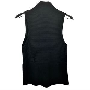 EILEEN Fisher Black Ribbed Merino Zip Front Vest w/ Patka Trim Size XS