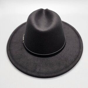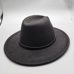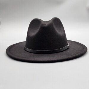 EINSKEY Womens Black Felt Fedora Hat Wide Brim Western Style New