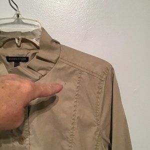 This jacket is lightweight and has a full button up front, two flap front pockets and an adjustable drawstring waist from the inside. Wear it open or buttoned up but this piece is just the right weight where you can use it in your wardrobe all year long and style it so many ways!