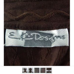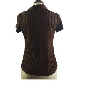 E.K Designs Ribbed Brocade stretchy buttons down shirt blouse dark chocolate