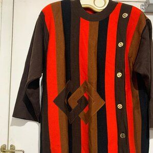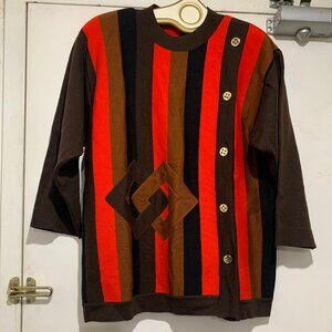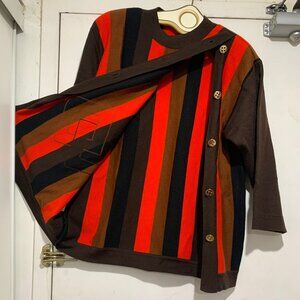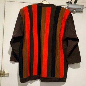 Ekler Crewneck Sweater, Lightweight, Size M, Multicolor Stripe, 100% Merino Wool, Three Quarter Sleeve, Shoulder Pad, Side Button Down, Closure Pullover, Made in Italy, Good Condition, Casual Sweater, Great Look, Great Fit.