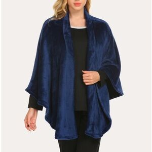 EKOUAER High quality flannel poncho blue velour O/S