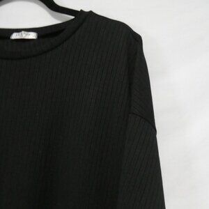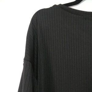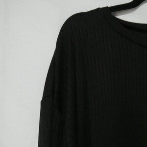 EKOUAER | XXL | Classic Black Relaxed Ribbed Short Sleeve Top