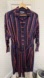 EL GANSO striped satin shirt dress tying belt navy blue red cream balloon sleeves large. This is a beautiful heavier weight fabric with pockets, button cuffs, collared, front buttons have a placket, pullover with buttons halfway, curved hemline