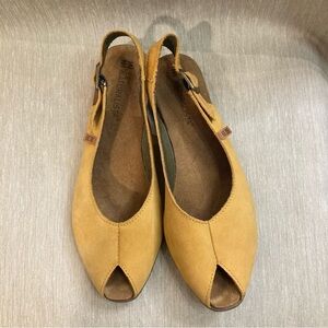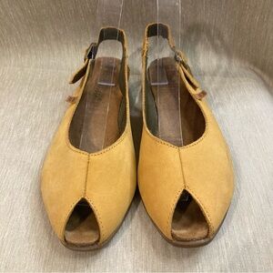 EL NATURALISTA Sz 38 Yokono Suede Peep Toe Velcro Closure Shoes Sandals in Yellow. Beautiful and elegant. Dress up or down. Make a colourful statement.