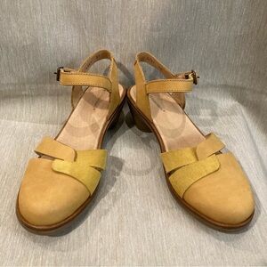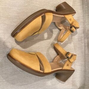 EL NATURALISTA Sz 39 Yellow Leather Two Toned Rubber Sole Buckle Closure Sandals. Gorgeous statement sandals that couple beauty and function. All day wear that can take your outfit to a new level. Like new.