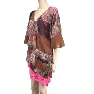 EL RODEO Designer Japanese Harajuku Kawaii Oversized Patchwork Boho Flowy Pink Brown S