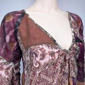 EL RODEO Designer Japanese Harajuku Kawaii Patchwork Boho Flowy Pink Brown S