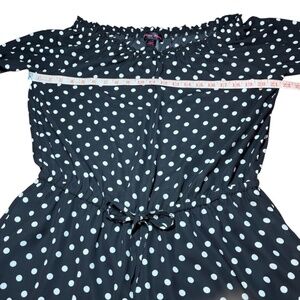 ELENA WANG Easy Care Poly Black / White Polka Dot Romper Bell Sleeves CA Sz L