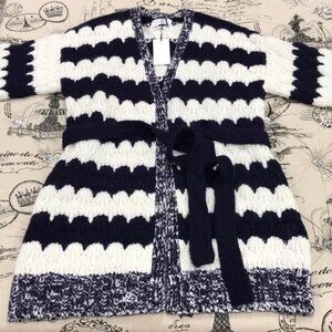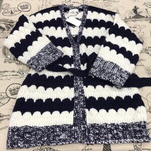 A cozy cardigan features classic stripes, relaxed shoulders and a wraparound belt that adds flattering shape to the cloudlike piece. This versatile style is made from yarn air spun with baby alpaca, the annually shorn fleece that maintains a wonderfully soft and lightweight feel