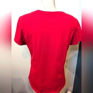 Fun red t-shirt with a festive Santa graphic. Perfect for the holiday