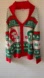 Cheerful cardigan with festive red and green patterns. Ideal for holiday celebrations.