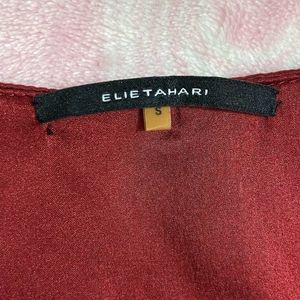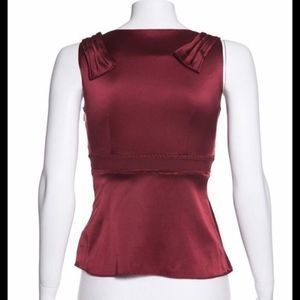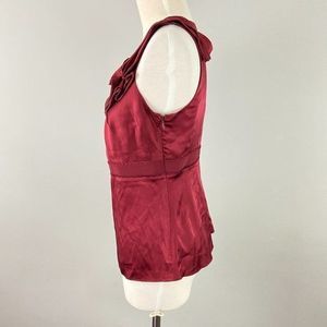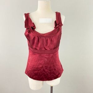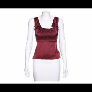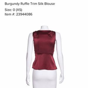 ELIE TAHARI Burgundy Ruffle Trim Silk Blouse