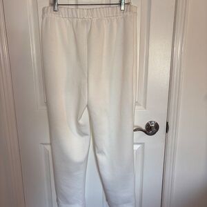 Buttery soft, creamy white, pull on comfortable pants with flat front, straight leg, and elasticized back waistband. Brand new!