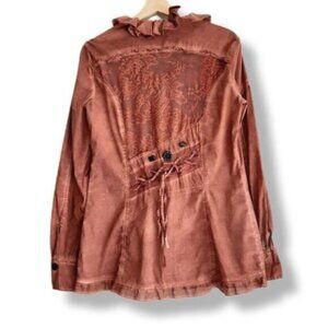 ELISA CAVALETTI Italy Button Down Boho Lace Ruffle Blouse Rust Red Sz M