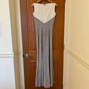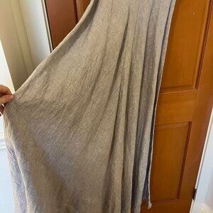 Eliza Faulkner floor length, bias cut linen dress, size Small. Purchased in 2014 for an event and only worn once. Minor discolouration in armpit area. Hem was altered to suit my 5'8" height. Measurements taken flat: pit to pit: 17", waist 13.75", overall length (neckline to skirt hem) 59".