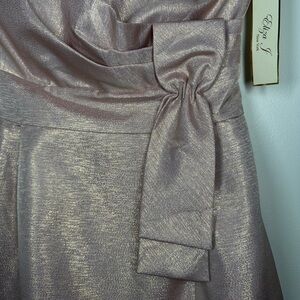 Eliza J Light Pink Metallic Mini Dress with Bow Accent Size 6