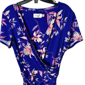 ELIZA J faux wrap floral dress. Fit&flare,belted,surplice, cap sleeves,