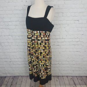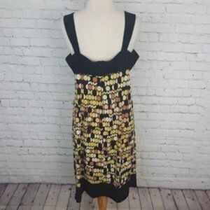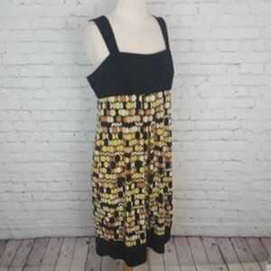 Eliza J sleeveless dress mod pattern circles yellow black tan