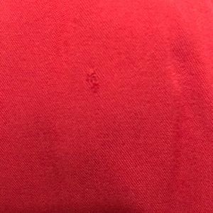 Great overall shape. There is a small pic in the material (it’s not a hole) up by the pocket on the right leg. Not noticeable when wearing