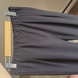 Featuring an elastic waistband and a pleated front design, they offer a relaxed fit and a touch of sophistication. The classic black color adds versatility to your ensemble. Crafted from lightweight drapey fabric, they provide both ease of movement and a chic silhouette. These pants are brand new without the original tag, ready to elevate your look.