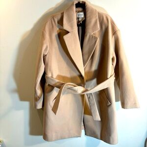 ELIZABETH and JAMES Sz L Pea Coat Partly Lined Oversized Belted Peek Lapel Pockets. Nice and warm transitional piece. Bougie beige. Vanilla girl aesthetic. Classic lines. Elevated classic.