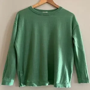 Beautiful green alpaca blend lightweight sweater top from Aussie ethical slow fashion label Elk. Button detail at the sides.