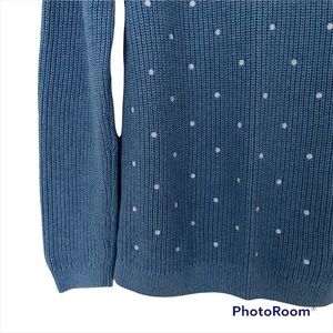 ELLE BRAND LIGHT BLUE POLKA DOT SWEATER WITH WHITE SPOTS, SMALL, 100% COTTON