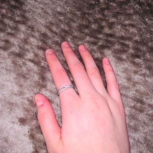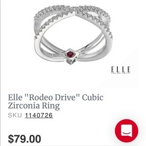 this infinity shape, chic ring is sterling silver, with a ruby crystal on the inside of the ring! Cubic Zirconia. Perfect to dress up an outfit but also wear everyday!